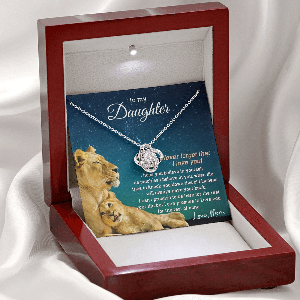 Imaging the look of joy on your loved Daughter face when she sees this gorgeous Love necklace, a heartfelt gift sparkling with diamond-like cubicĀ zirconia crystals.Ā The love knot Necklace represents andĀ unbreakable bond between two souls.Ā This symbol of eternal love is a forever favorite and trending everywhere.